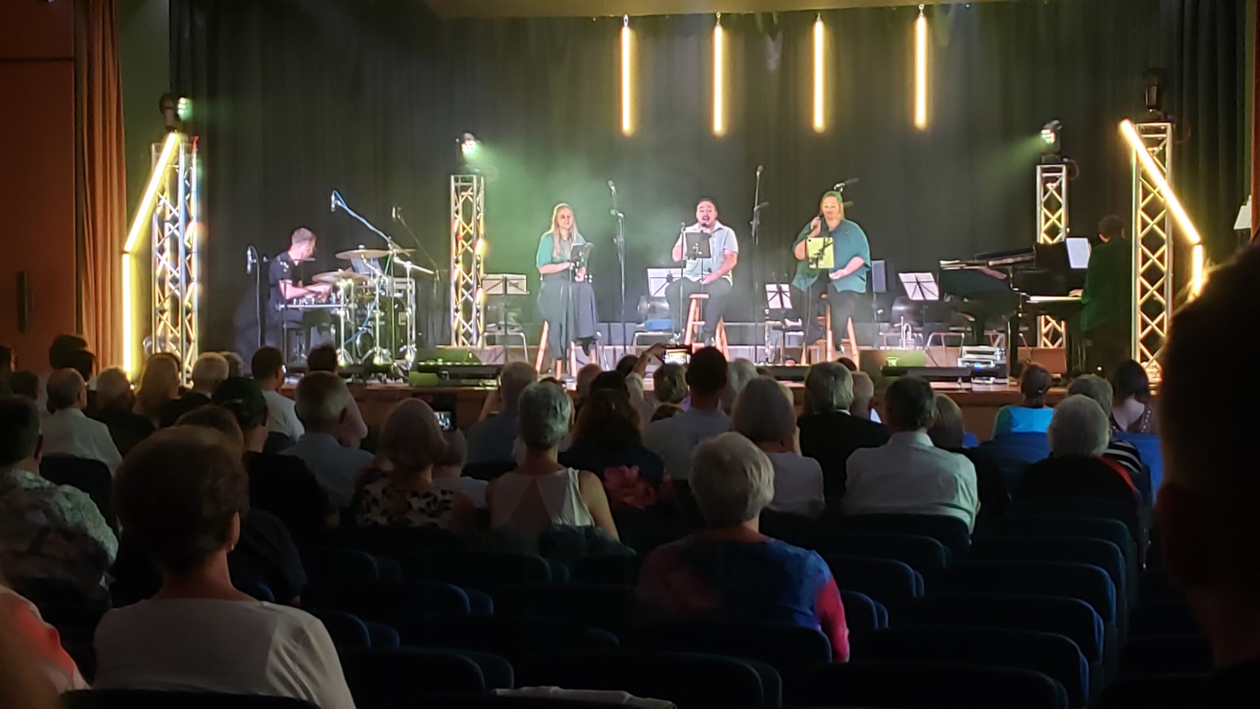 Hier wurde die gesamte Mikrofonierung (Chor, Orchester, Gesangssolisten und Sprecher), FOH, Monitoring, Funkstrecken und Recording (über 50 Ein- und Ausgangskanäle) von „Lucke Events“ und die Lichttechnik von Sven Peters (www.vj-sven.de) realisiert: